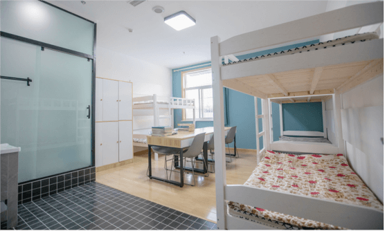 校区提供2人间、4人间和6人间供学生选择;聘请专职宿管员,7*24小时值班,保障宿舍安全和良好的休息环境。