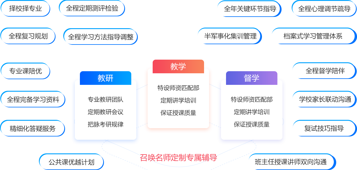 | 全科管联火箭班 | / | 全程老师授课;超大课时量保障;院校专业数据选择;特殊阶段个性化指导。 | 签署服务协议 |